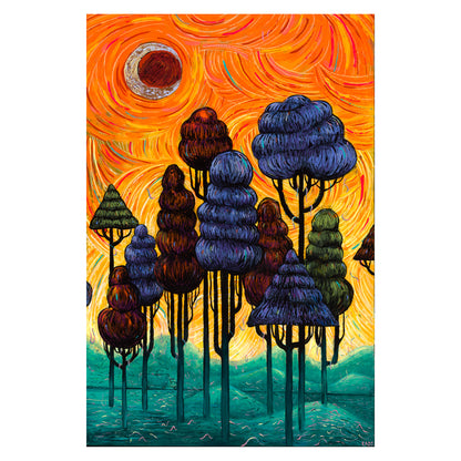 Falling Feelings is a 24" x 36" original gouache and pastel piece on 1.5" deep wood panel. The painting is treated with a protective layer of UV varnish.