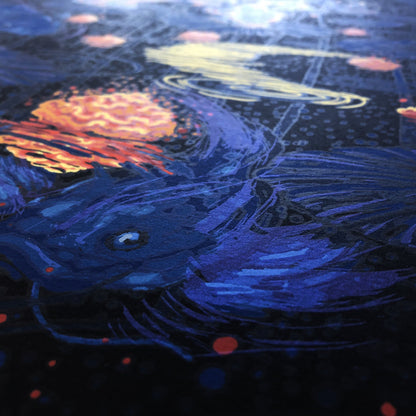 "Only the Rain Knows" is an 18" x 24" 10 color screenprint with an eleventh layer of blue diamond dust, printed in a limited edition of 150. Prints come with the accompanying Certificate of Authenticity/poem.