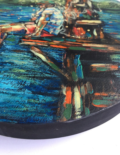 "Riverheart" is an original 8" round gouache painting on 3/4" deep wood panel. This piece comes unframed.