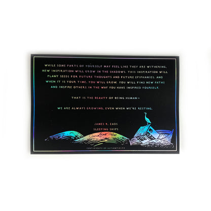 "Sleeping Ships (Wood Panel Edition)" is an 18" x 24" limited edition 14-color screen print on 1.5" thick wooden panel and includes a Certificate of Authenticity and is ready to hang.