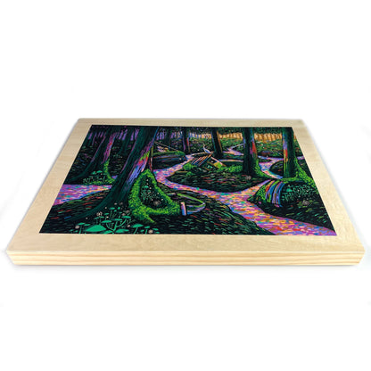 - 14-color screen print on Wood Panel with glow in the dark layer