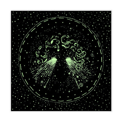 "The Gorgoneion Amulet" is a 12" x 12" four color screenprint with a fifth glow in the dark layer on Epic Black paper. Prints are hand signed and numbered in a limited edition of 66.